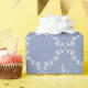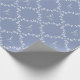 Chic and modern. This memorable french style wrapping paper features a repeat pattern which includes a lovely set of contemporary fonts inside a white floral frame, against a dusty blue background.