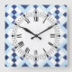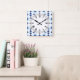 Blue and White Moroccan Geometric Kitchen Square Wall Clock