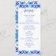 Perfect for both formal and casual affairs, this Blue and White Moroccan Pattern Wedding Menu effortlessly complements a variety of wedding themes, adding a hint of sophistication to your celebration. Set the tone for an unforgettable dining experience with this enchanting menu card, sure to leave a lasting impression on your guests.