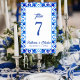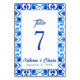 Blue and White Moroccan Tile Pattern Wedding Table Number