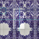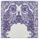 My original, copyrighted ceramic tile owl mural in cobalt blue and white creates a stunning fabric pattern.
