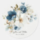 Blue and White Painterly Floral Wedding Classic Round Sticker
