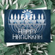 Blue and White Painting of Hanukkah Menorah Foil Holiday Card
