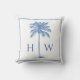 Blue and White Palm Palmetto Tree Monogram Cushion