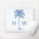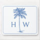 Blue and White Palm Palmetto Tree Monogram Mouse Pad