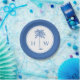 These coastal inspired round paper party plates feature a classic palm palmetto tree in blue on a white background with a monogram that you can personalise with your choice of initials.