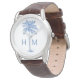 This modern coastal inspired watch features a blue palm palmetto tree with a monogram that you can personalise with your choice of initials.