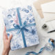 Blue and White Peonies and Blossoms Watercolor Wrapping Paper