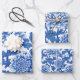 Blue and White Peony Chinoiserie Floral Wrapping Paper Sheet