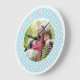 A personalised photo wall clock, with blue and white polka dot pattern, suitable for kids.