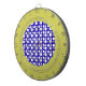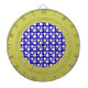 blue and white polka dots dartboard