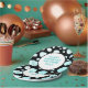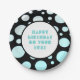 Personalise these fun and playful modern paper plates with your text within the border of sky blue and white gradient circles and polka dots on black. Personalise with a Name for a Happy Birthday.