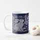 My original, copyrighted rabbit ceramic tile mural makes a beautiful design on this mug. An intricate design in dark blue and white.