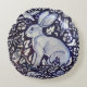 My original, copyrighted intricate rabbit and creatures ceramic plate design is a cute pillow pattern. Shadings and reflections on the plate are visible. Perfect blue & white kitchen accent.