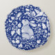 Blue and White Rabbit Pottery Look Round Pillow