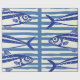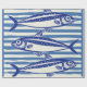 Trendy Mediterranean Sardine fish pattern in blue on a white background for a fun coastal nautical summer feel.