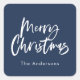 Blue and white script merry Christmas Square Sticker