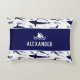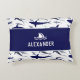 Add a touch of the ocean to the bedroom or nursery of your little boy with this custom blue and white shark pattern accent pillow. Pillow has cute sharks swimming in the sea and your little one's first name.