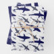 Add a touch of the ocean to the birthday party of your little boy with this custom blue and white shark pattern set of wrapping paper sheets. Sheets have cute sharks swimming in the sea and your little one's first name on blue and white stripes.