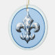 Blue and White Snowflake Fleur de Lis Ornament