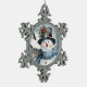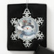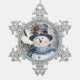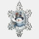 Blue and White Snowman Face Snowflake Pewter Christmas Ornament