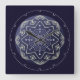 Decorate your space with this pretty clock, featuring an eight point star shape mandala including native American motifs and symbols from nature. In gradient indigo and navy blue with white. Outer ring with notches for the hours is a removable template if you prefer a cleaner design.
