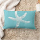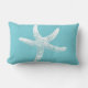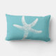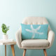 A white starfish on a teal blue background. A light and airy pattern with interesting texture, this starfish pillow is the perfect addition to your beach themed home.