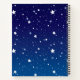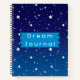 This dream journal has a dark blue background - the night sky - and it has a scattering of white and blue stars of different colours on both the front and back of the journal.
