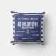 This blue and white striped throw pillow has a nautical theme. It says 'Welcome Aboard' in white script. You can personalise this boy's nursery pillow with the baby's name, birth weight, birth length, and birth date. This nautical throw pillow would make nice nautical baby shower gift or fit well with nautical nursery room decor.
