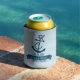 Blue And White Stripes & Nautical Boat Anchor Can Cooler