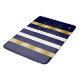 Blue and white stripes pattern gold accents bath mat