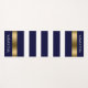 Blue and white stripes pattern with gold accents. Optional monogram.