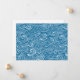 An intricate swirl and wave are mixed in varying shades of blues. Large and small blue circles are surrounded by larger swirls.