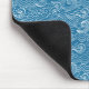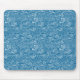 An intricate swirl and wave are mixed in varying shades of blues. Large and small blue circles are surrounded by larger swirls.