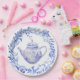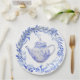 These tea pot paper plates have a monochromatic design featuring a blue and white tea set surrounded by a wreath of blue leaves. These plates would be perfect for a tea party or for a birthday party, baby shower or bridal luncheon.