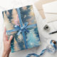 Bring a touch of festive elegance to your holiday gifts with this stunning blue Christmas wrapping paper, adorned with a beautiful pattern of Christmas trees and stars made out of yellow and blue lights. The deep blue background evokes the calm and magic of a winter’s night, creating the perfect setting for the luminous, eye-catching design.