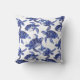 This coastal themed throw pillow features a blue and white pattern of turtles.
