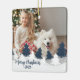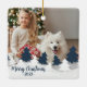 Blue and White Two Photo Christmas Trees Ceramic Ornament