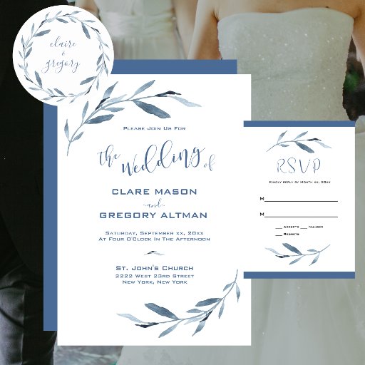Blue and White Watercolor Leaves WeddingDesigned by Ann Monahan