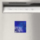 Winter holiday art with an elegant pattern of pine boughs and pinecones in blue and white on an icy background of blues and violet.
