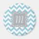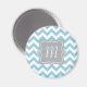A blue and white chevron zig zag pattern has a light grey monogram frame with customisable initial.
