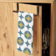 Add a bold pattern to your kitchen with this fun blue and gold atomic star and circle mid century pattern kitchen towel.