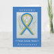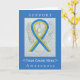 The guardian angel greeting or note card features the picture of a blue and yellow awareness ribbon angel painting. Blue and yellow awareness ribbon means support for children with Down's Syndrome. The card states "Support <Your Cause Here> Awareness". Add your own optional words or message to the greeting card for personalised angel art cause awareness notecards! You can also remove the text for an art only angel note cards. The blue and yellow awareness angel ribbon painting art greeting cards can be customised with personalised messages to make great awareness cause art cards for fundraisers, awareness gifts, or other special events. Give this angel art card as an awareness ribbon gift for any occasion.
