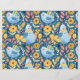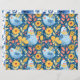 Blue and yellow boho chicken seamless pattern. Baby shower gift, home decor