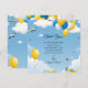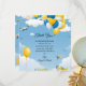 Celebrate your little co-pilot with this cheerful baby shower thank you card featuring playful aeroplanes, classic yellow car, and festive balloons floating through a sky of fluffy clouds. Designed in a vibrant palette of yellow, blue, and white, this whimsical “Up, Up & Away” invitation is perfect for baby boys or aviation-loving families. A delightful choice for travel-themed, transportation, or adventure-inspired baby showers. Fully customisable with your shower details!