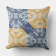 Chic blue and yellow patchwork monogrammed throw pillow.