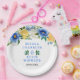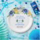 This beautiful and elegant wedding plate features watercolor blue, yellow and white flowers with foliage. The text combines handwritten script and serif fonts for a stylish and modern look. This is perfect for a spring or summer rustic wedding.