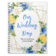 This beautiful and elegant notebook would make a great wedding planner, photo album, guest book and more. The design features watercolor blue, yellow and white flowers with foliage on a gold geometric frame. The text combines handwritten script and serif fonts for a stylish and modern look. This is perfect for a spring or summer rustic wedding.