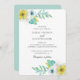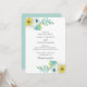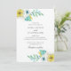 Blue and yellow flowers. Mint botanical wedding Invitation