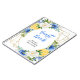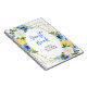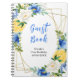 This fun and whimsical birthday party guest book features watercolor blue, yellow and white flowers with foliage on a gold geometric frame. The text combines handwritten script and serif fonts for a stylish and modern look. This is perfect for a spring or summer rustic birthday party.